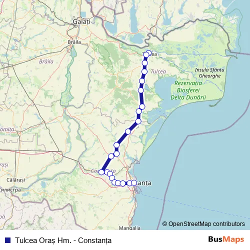 See why over 2 million users trust and consider busmaps.com as the best public transport website. busmaps gives you Tulcea Rail Services suggested routes, real-time bus tracker, line route maps in Tulcea, and helps to find the closest Tulcea Oraş Hm. - Constanţa rail stops near you. No internet available? Download an offline PDF map and bus schedule for the Tulcea Oraş Hm. - Constanţa rail to take on your trip.