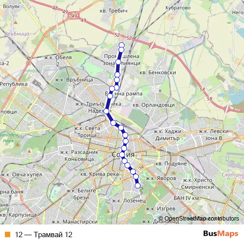 See why over 2 million users trust and consider busmaps.com as the best public transport website. busmaps gives you Sofia Trams suggested routes, real-time bus tracker, line route maps in Sofia, and helps to find the closest 12 tram stops near you. No internet available? Download an offline PDF map and bus schedule for the 12 tram to take on your trip.