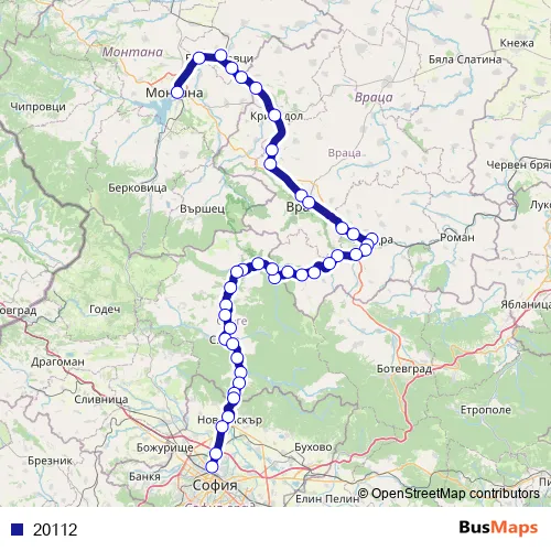 The first stop of the 20112 rail route is Монтана and the last stop is София Север. 20112 is operational during ежедневно.
