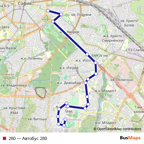 Bus 280 - Автобус 280 in Sofia: Stops & Timetable