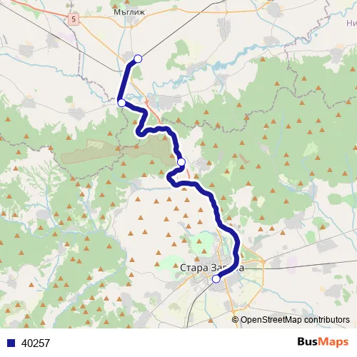The first stop of the 40257 rail route is Тулово and the last stop is Стара Загора. 40257 is operational during ежедневно.
