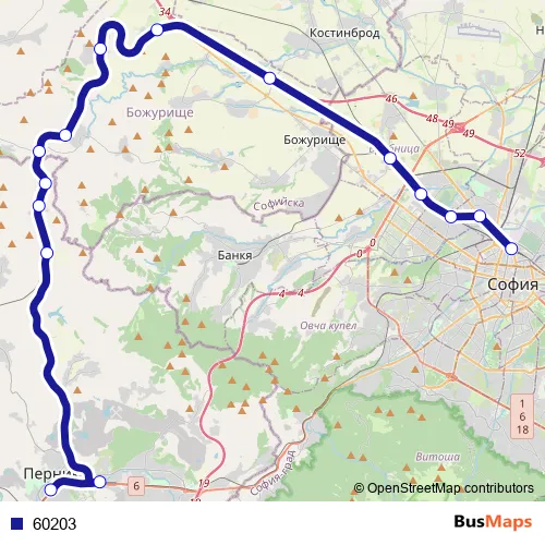 The first stop of the 60203 rail route is Централна гара София and the last stop is Перник. 60203 is operational during ежедневно.