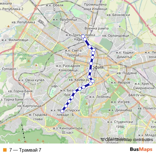 See why over 2 million users trust and consider busmaps.com as the best public transport website. busmaps gives you Sofia Trams suggested routes, real-time bus tracker, line route maps in Sofia, and helps to find the closest 7 tram stops near you. No internet available? Download an offline PDF map and bus schedule for the 7 tram to take on your trip.