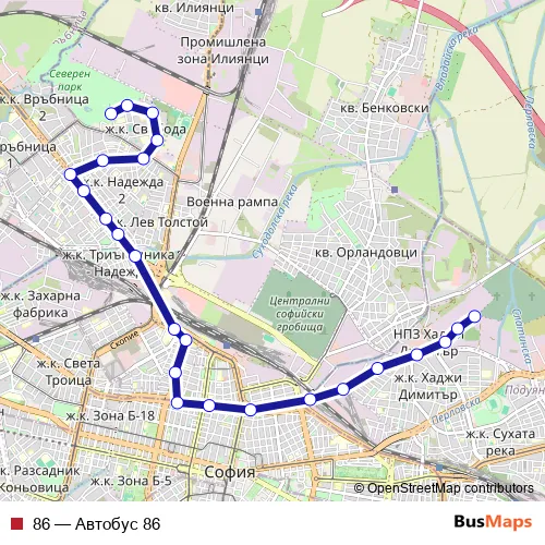 Bus 86 - Автобус 86 in Sofia: Stops & Timetable