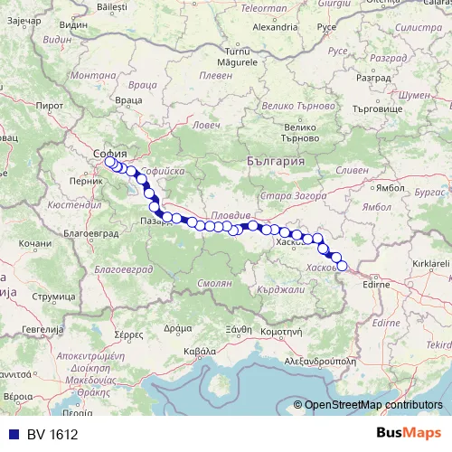 The first stop of the BV 1612 rail route is Свиленград and the last stop is Централна гара София. BV 1612 is operational during ежедневно.