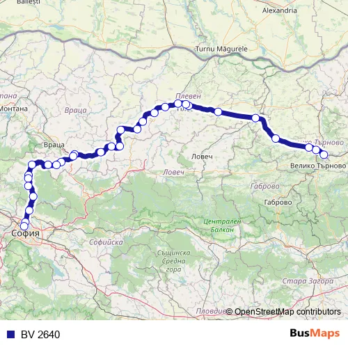 The first stop of the BV 2640 rail route is Горна Оряховица and the last stop is София Север. BV 2640 is operational during ежедневно.
