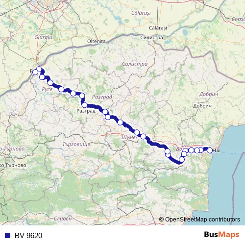 The first stop of the BV 9620 rail route is Варна and the last stop is Централна гара Русе. BV 9620 is operational during ежедневно.
