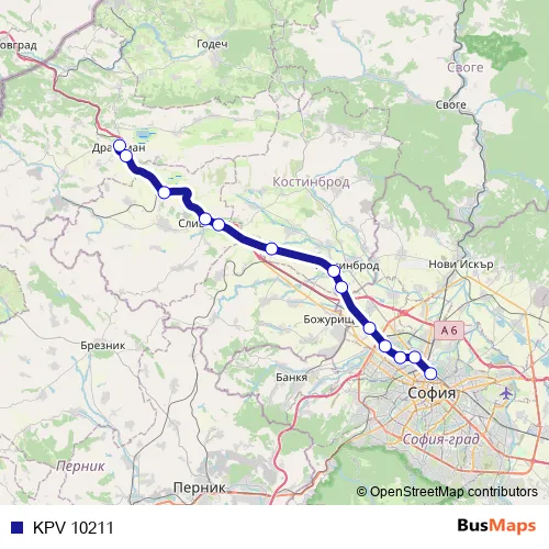 The first stop of the KPV 10211 rail route is Драгоман and the last stop is Централна гара София. KPV 10211 is operational during ежедневно.