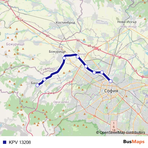 The first stop of the KPV 13208 rail route is Централна гара София and the last stop is Банкя. KPV 13208 is operational during ежедневно.