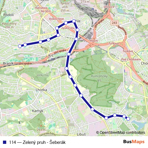 Click here to view the nearest 114 - Zelený pruh - Šeberák bus stop.
