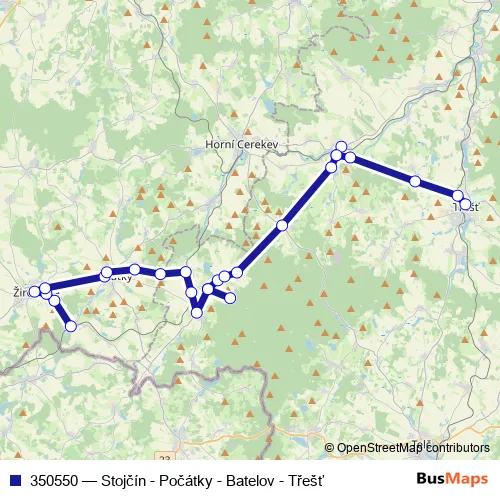Click here to view the nearest 350550 - Stojčín - Počátky - Batelov - Třešť bus stop.