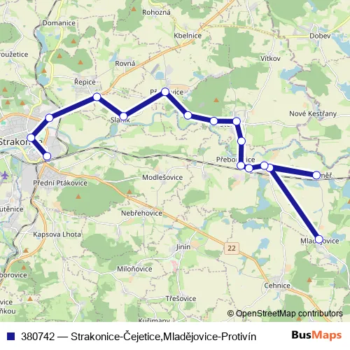 Click here to view the nearest 380742 - Strakonice-Čejetice,Mladějovice-Protivín bus stop.
