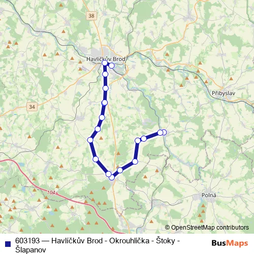 Click here to view the nearest 603193 - Havlíčkův Brod - Okrouhlička - Štoky - Šlapanov bus stop.