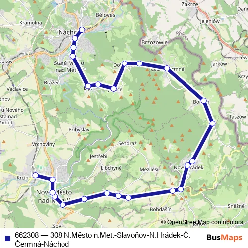 Bus 662308 - 308 N.Město n.Met.-Slavoňov-N.Hrádek-Č.Čermná-Náchod: Full Schedule in Kudowa-Zdroj