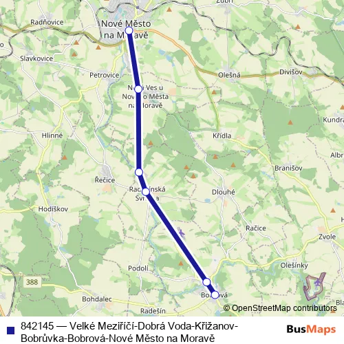 Click here to view the nearest 842145 - Velké Meziříčí-Dobrá Voda-Křižanov-Bobrůvka-Bobrová-Nové Město na Moravě bus stop.
