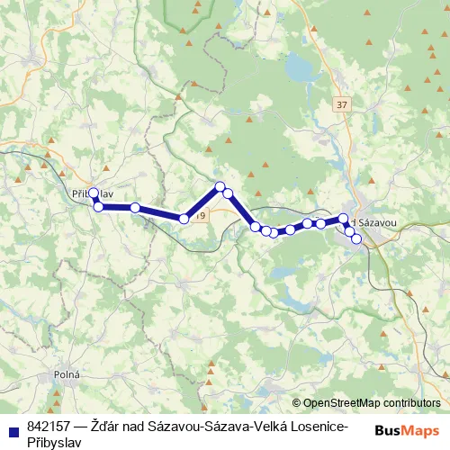 Click here to view the nearest 842157 - Žďár nad Sázavou-Sázava-Velká Losenice-Přibyslav bus stop.