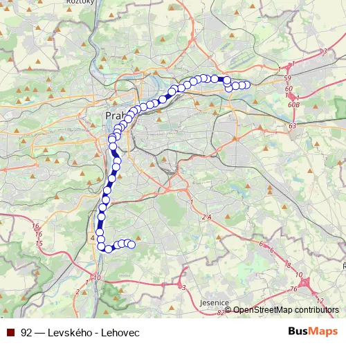 Click here to view the nearest 92 - Levského - Lehovec tram stop.
