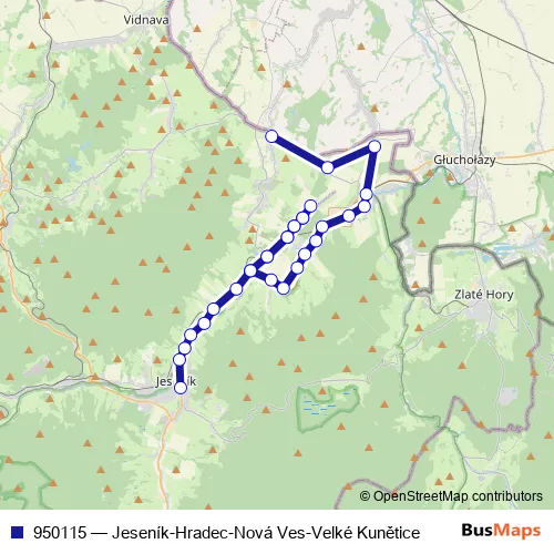 Bus 950115 - Jeseník-Hradec-Nová Ves-Velké Kunětice Schedule in Glucholazy