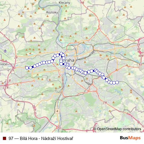 Click here to view the nearest 97 - Bílá Hora - Nádraží Hostivař tram stop.