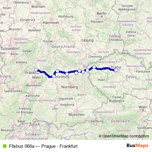 Click here to view the nearest Flixbus 068a - Prague - Frankfurt bus stop.