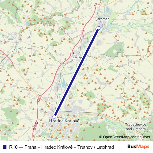 See why over 2 million users trust and consider busmaps.com as the best public transport website. busmaps gives you Hradec Kralove Rail Services suggested routes, real-time bus tracker, line route maps in Hradec Kralove, and helps to find the closest R10 rail stops near you. No internet available? Download an offline PDF map and bus schedule for the R10 rail to take on your trip.