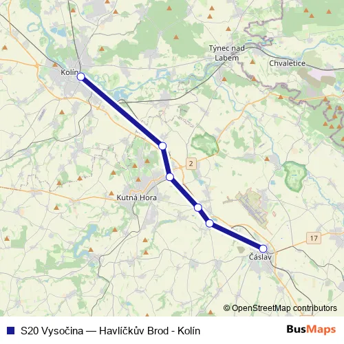 Čáslav. S20 Vysočina (Havlíčkův Brod - Kolín) is operational during ежедневно.