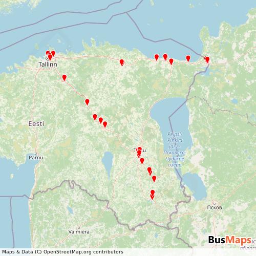 Aktsiaselts MK Autobuss operates in the following cities: Narva, Tartu.