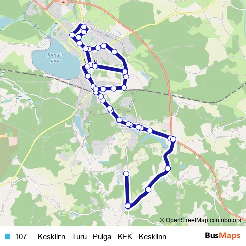 Click here to view the nearest 107 - Kesklinn - Turu - Puiga - KEK - Kesklinn bus stop.