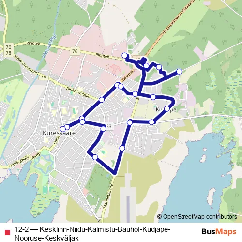Bus 12-2 - Kesklinn-Niidu-Kalmistu-Bauhof-Kudjape-Nooruse-Keskväljak Schedule in Kuressaare