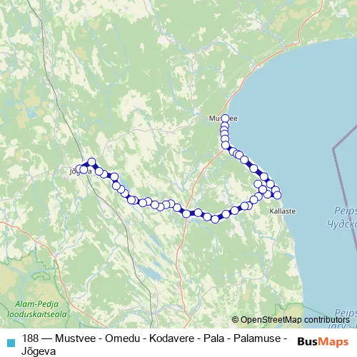 Click here to view the nearest 188 - Mustvee - Omedu - Kodavere - Pala - Palamuse - Jõgeva bus stop.