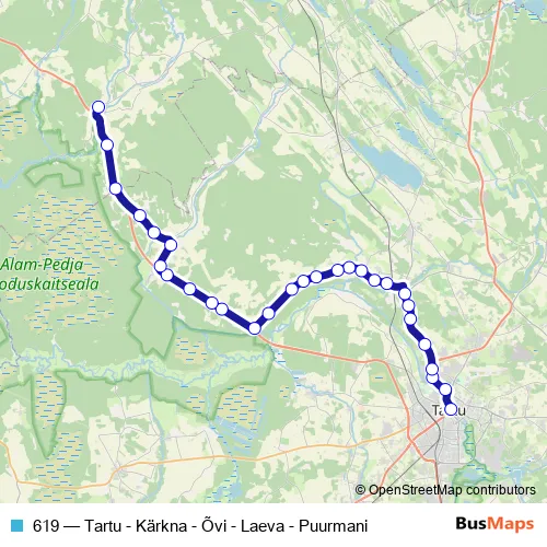 Bus 619 - Tartu - Kärkna - Õvi - Laeva - Puurmani: Full Schedule in Tartu