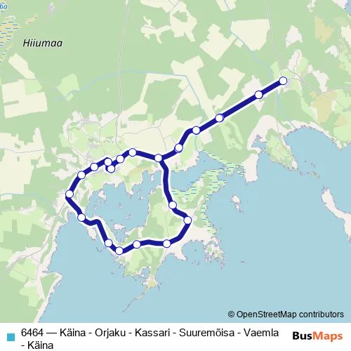 Click here to view the nearest 6464 - Käina - Orjaku - Kassari - Suuremõisa - Vaemla - Käina bus stop.