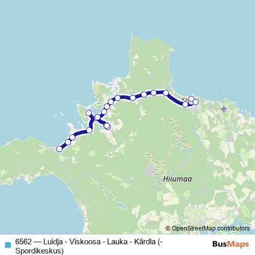Click here to view the nearest 6562 - Luidja - Viskoosa - Lauka - Kärdla (- Spordikeskus) bus stop.