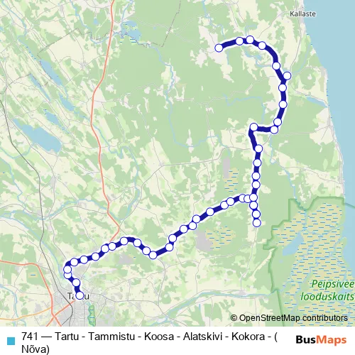 Bus 741 - Tartu - Tammistu - Koosa - Alatskivi - Kokora - (Nõva): Full Schedule in Alatskivi