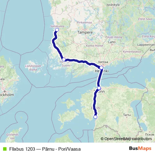 Bus Flixbus 1203 - Pärnu - Pori/Vaasa in Helsinki: Stops & Timetable