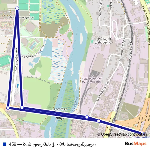 Click here to view the nearest 459 - ბობ უოლშის ქ. - მ/ს სარაჯიშვილი bus stop.
