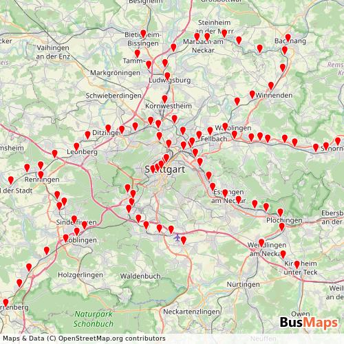 DB Regio AG S-Bahn Stuttgart operates in the following cities: Stuttgart.
