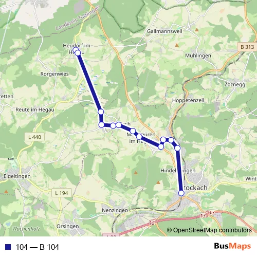 See why over 2 million users trust and consider busmaps.com as the best public transport website. busmaps gives you Stockach Buses suggested routes, real-time bus tracker, line route maps in Stockach, and helps to find the closest 104 bus stops near you. No internet available? Download an offline PDF map and bus schedule for the 104 bus to take on your trip.