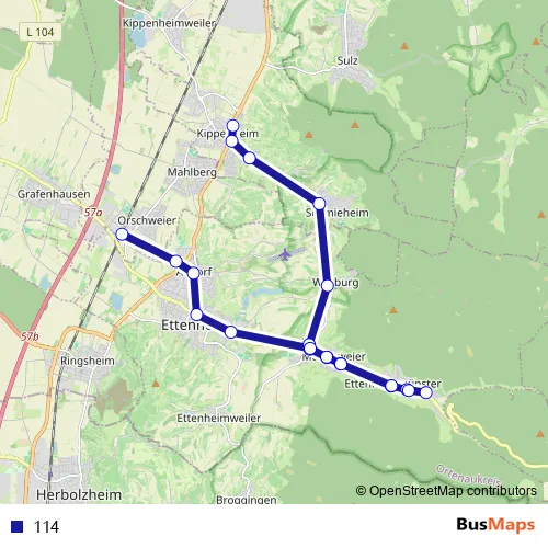 See why over 2 million users trust and consider busmaps.com as the best public transport website. busmaps gives you Ettenheim Buses suggested routes, real-time bus tracker, line route maps in Ettenheim, and helps to find the closest 114 bus stops near you. No internet available? Download an offline PDF map and bus schedule for the 114 bus to take on your trip.