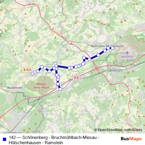 Bus 142 - Schönenberg - Bruchmühlbach-Miesau - Hütschenhausen - Ramstein Schedule in Hutschenhausen