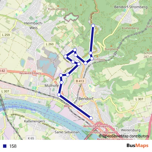 See why over 2 million users trust and consider busmaps.com as the best public transport website. busmaps gives you Neuwied Buses suggested routes, real-time bus tracker, line route maps in Neuwied, and helps to find the closest 158 bus stops near you. No internet available? Download an offline PDF map and bus schedule for the 158 bus to take on your trip.