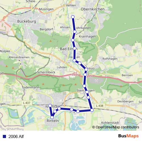 The first stop of the 2006 Alf bus route is Vehlen (Obernkirch.), Klinikum Schaumburg and the last stop is Rinteln Bahnhof. 2006 Alf is operational during ежедневно.