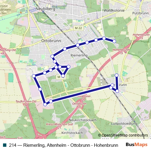 Click here to view the nearest 214 - Riemerling, Altenheim - Ottobrunn - Hohenbrunn bus stop.