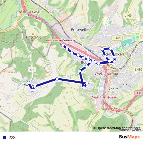 Bus 223 in Zweibruecken: Stops & Timetable