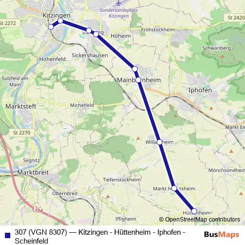 Click here to view the nearest 307 (VGN 8307) - Kitzingen - Hüttenheim - Iphofen - Scheinfeld bus stop.