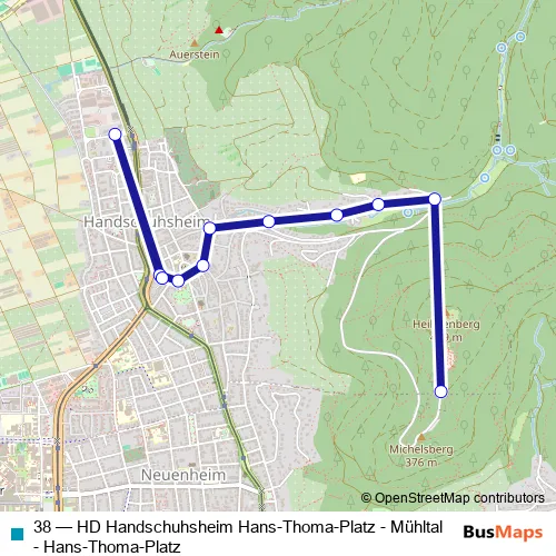 Click here to view the nearest 38 - HD Handschuhsheim Hans-Thoma-Platz - Mühltal - Hans-Thoma-Platz bus stop.