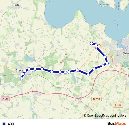 See why over 2 million users trust and consider busmaps.com as the best public transport website. busmaps gives you Wismar Buses suggested routes, real-time bus tracker, line route maps in Wismar, and helps to find the closest 400 bus stops near you. No internet available? Download an offline PDF map and bus schedule for the 400 bus to take on your trip.
