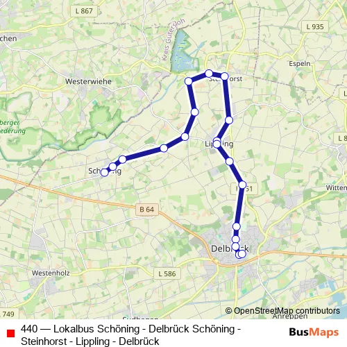 Click here to view the nearest 440 - Lokalbus Schöning - Delbrück Schöning - Steinhorst - Lippling - Delbrück bus stop.