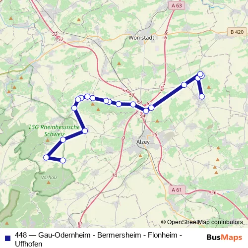 Click here to view the nearest 448 - Gau-Odernheim - Bermersheim - Flonheim - Uffhofen bus stop.