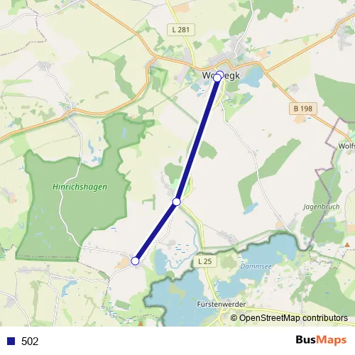 The first stop of the 502 bus route is Grauenhagen and the last stop is